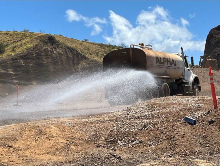 - Water trucks are used to control dust during excavation, loading, and loadout.