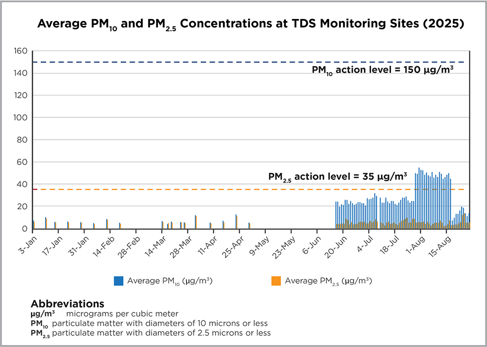 - Earthen cover is replaced daily to control dust at the TDS Site and the PDS.