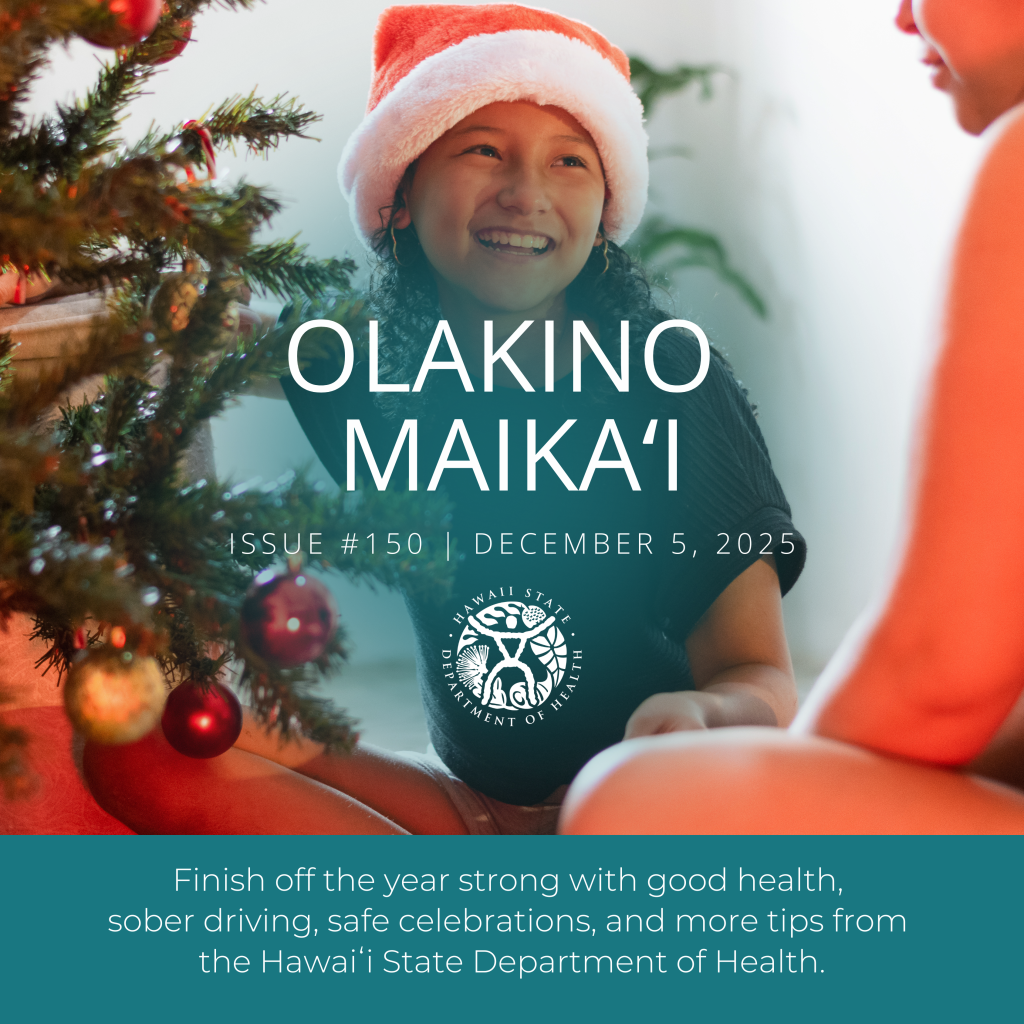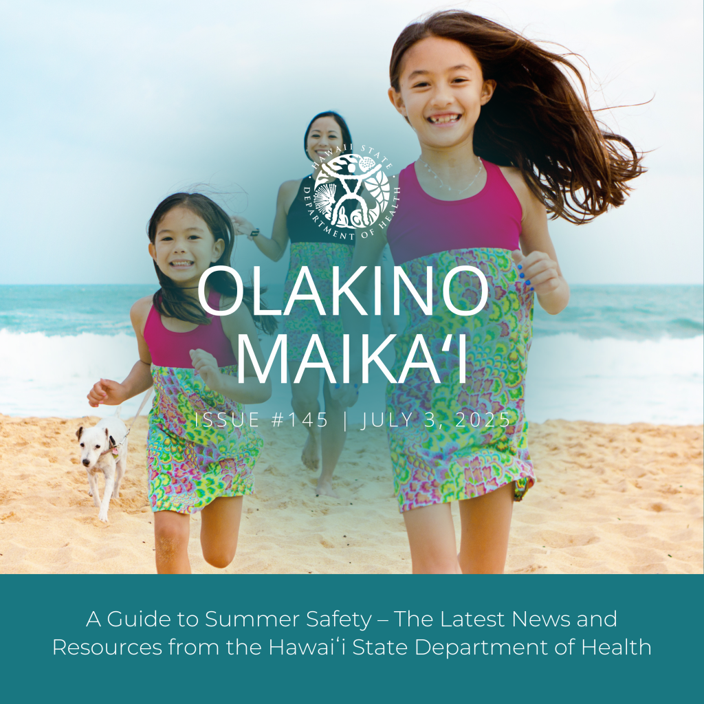 Welcome to Olakino Maikaʻi! In Hawaiian, the word olakino refers to the state of health and well-being. The word “ola” means life and health, and the word “kino” means body. Olakino is generally considered to be the greatest wealth and great health that one can attain, not just of the body but holistically. Maikaʻi in Hawaiian means good or well being. If youʻd like to stay up to date with monthly news from the Hawaiʻi State Department of Health, sign up for our Olakino Maikaʻi newsletter below.